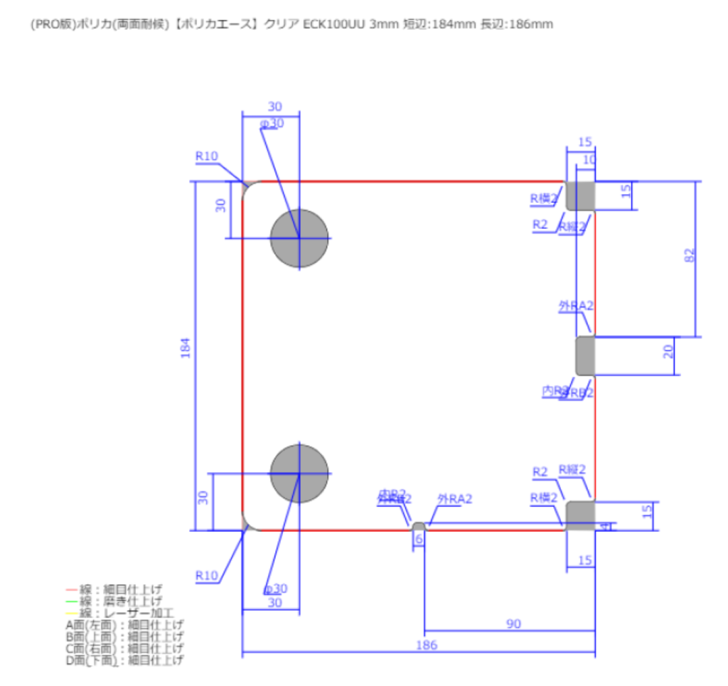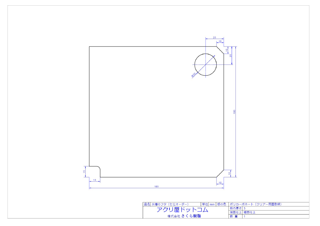 | 加工 | はざいや | アクリ屋(水槽用) | アクリ屋(ポリカ) |